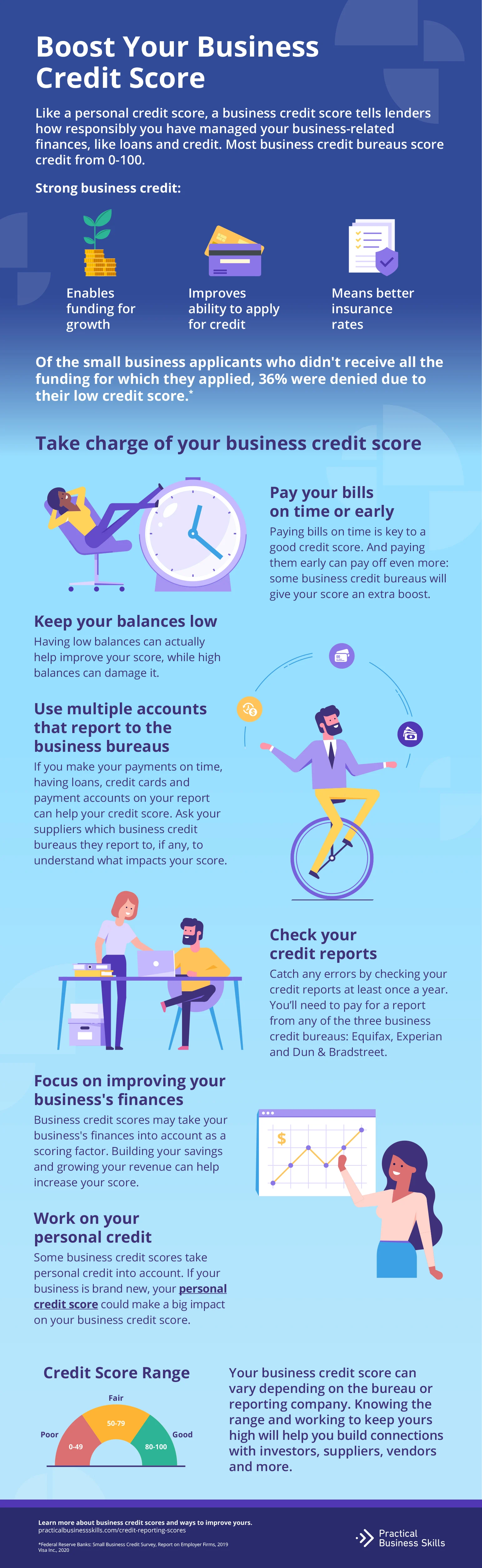 Learn how to boost your credit score since 36% of small business applicants don’t receive all the funding applied for due to their low credit score.